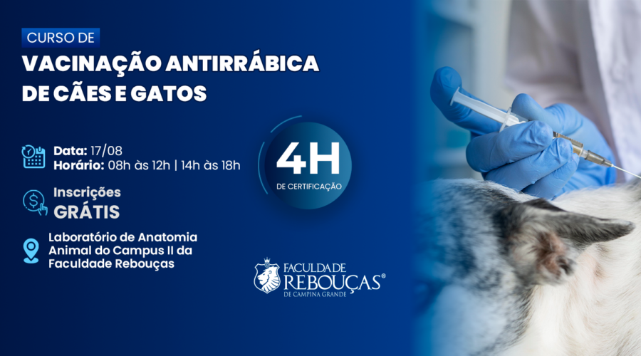 Neste sábado, a Faculdade Rebouças, em parceria com o curso de Medicina Veterinária, promoverá uma capacitação prática sobre vacinação antirrábica para cães e gatos. O evento ocorrerá no laboratório de Anatomia Animal do Campus II, e as inscrições são totalmente gratuitas. Não perca esta oportunidade de ampliar seus conhecimentos e contribuir para a saúde animal!consulte Mais informação