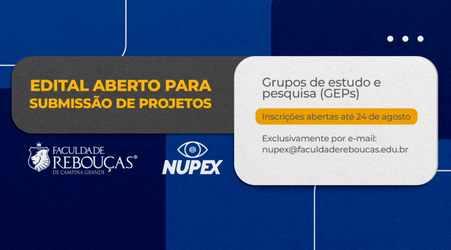 A Faculdade Rebouças, por meio do Núcleo de Pesquisa e Extensão (NUPEX), abriu hoje (10) as inscrições para envio de propostas para Grupos de Estudos e Pesquisa (GEPs) da Instituição. As propostas devem ser enviadas exclusivamente pelo e-mail nupex@faculdadereboucas.edu.br com prazo até 24 de agosto. A proposta deve ser enviada pelo professor orientador junto com todos os currículos lattes (docente responsável e integrantes) para o e-mail acima citado e a...consulte Mais informação