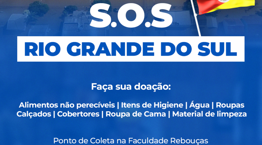 Diante dos recentes e lamentáveis acontecimentos no Rio Grande do Sul, a Faculdade Rebouças reforça seu compromisso com a solidariedade e abre um ponto de coleta na faculade para ajudar as vítimas das enchentes. Se você deseja fazer parte desta corrente do bem e contribuir de alguma forma, estamos recebendo doações de roupas, alimentos não perecíveis, cobertores e materiais de limpeza no Campus II da Faculdade Rebouças. Sua ajuda é...consulte Mais informação