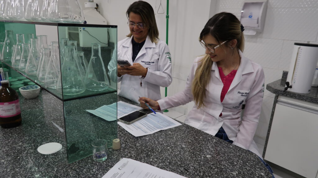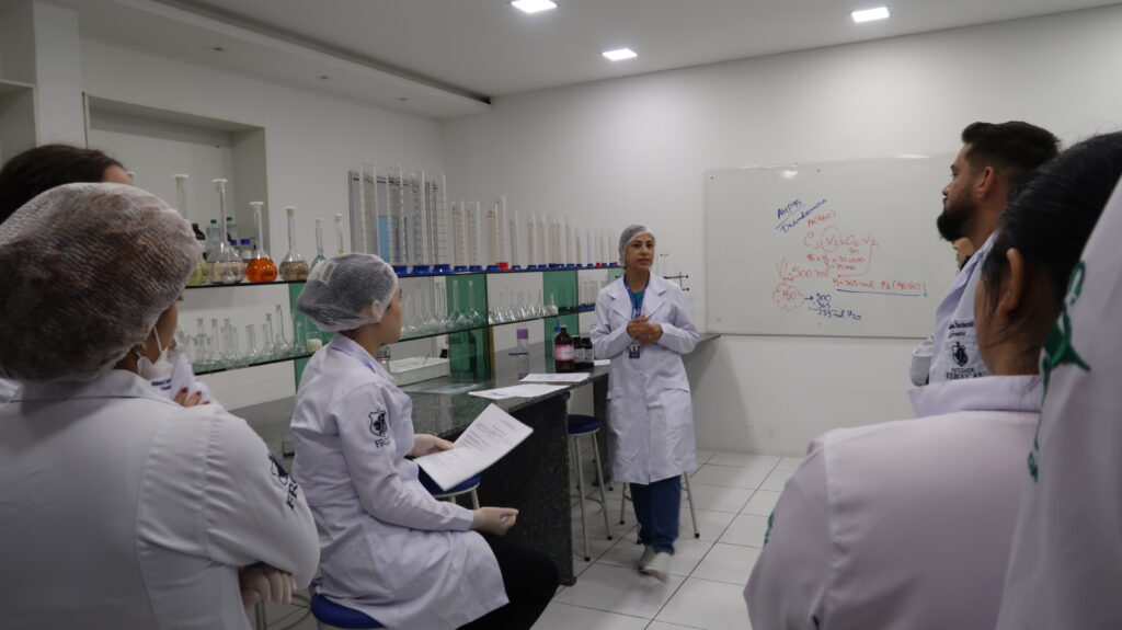Com foco na integração entre teoria e prática, a aula proporcionou aos estudantes uma vivência concreta da realidade profissional, aproximando-os do cotidiano da atuação farmacêutica em laboratórios e farmácias de manipulação.