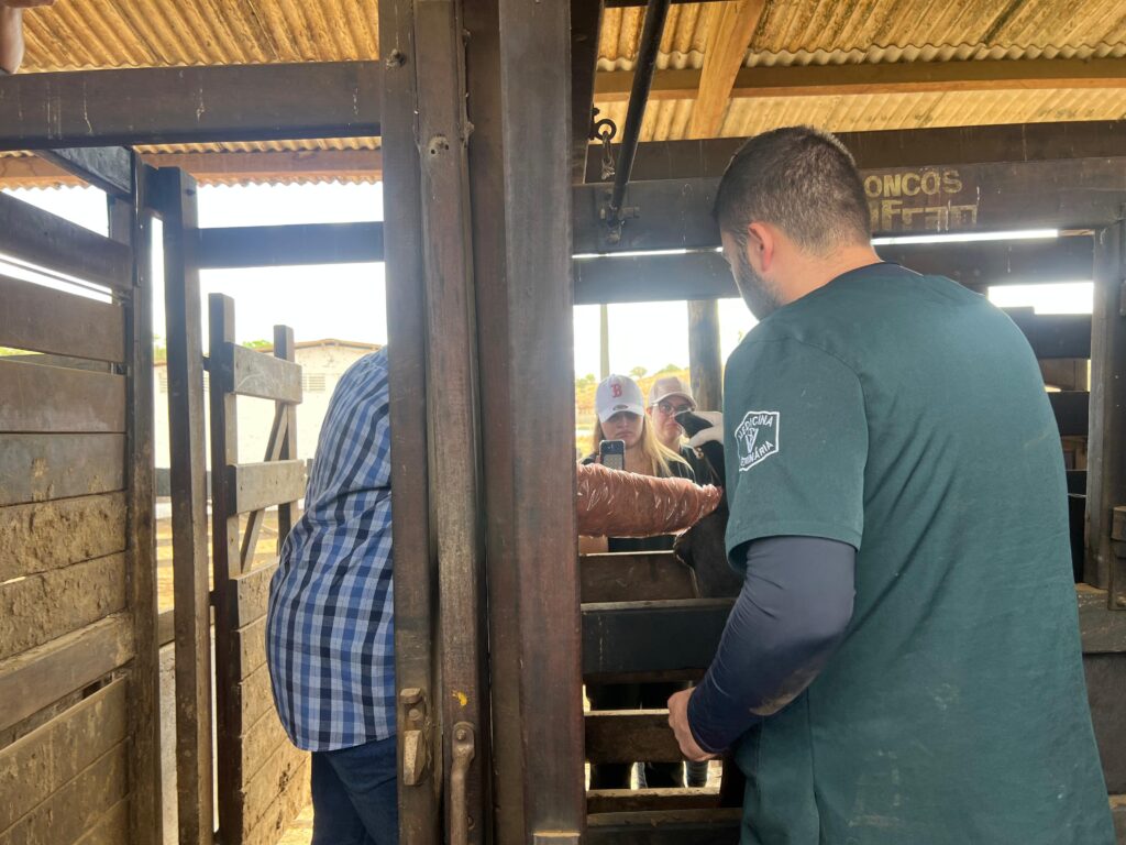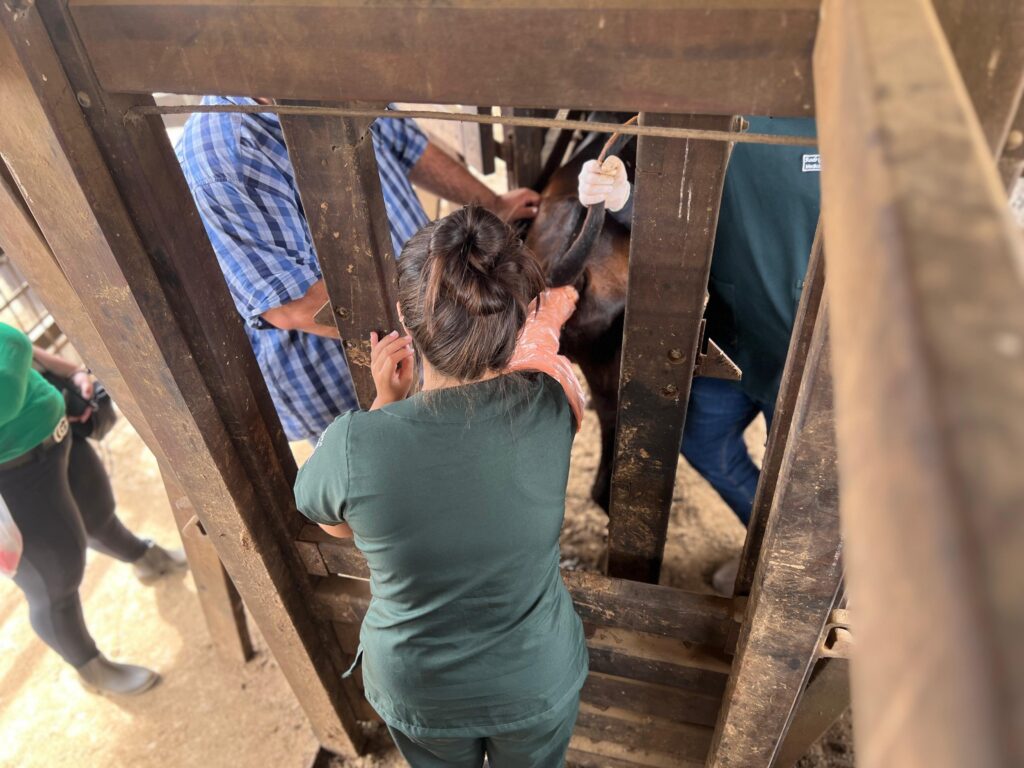 Durante a atividade, os estudantes participaram de práticas como palpação em bovinos, troca de experiências e observações clínicas, desenvolvendo habilidades fundamentais para o exercício da profissão com responsabilidade e sensibilidade.