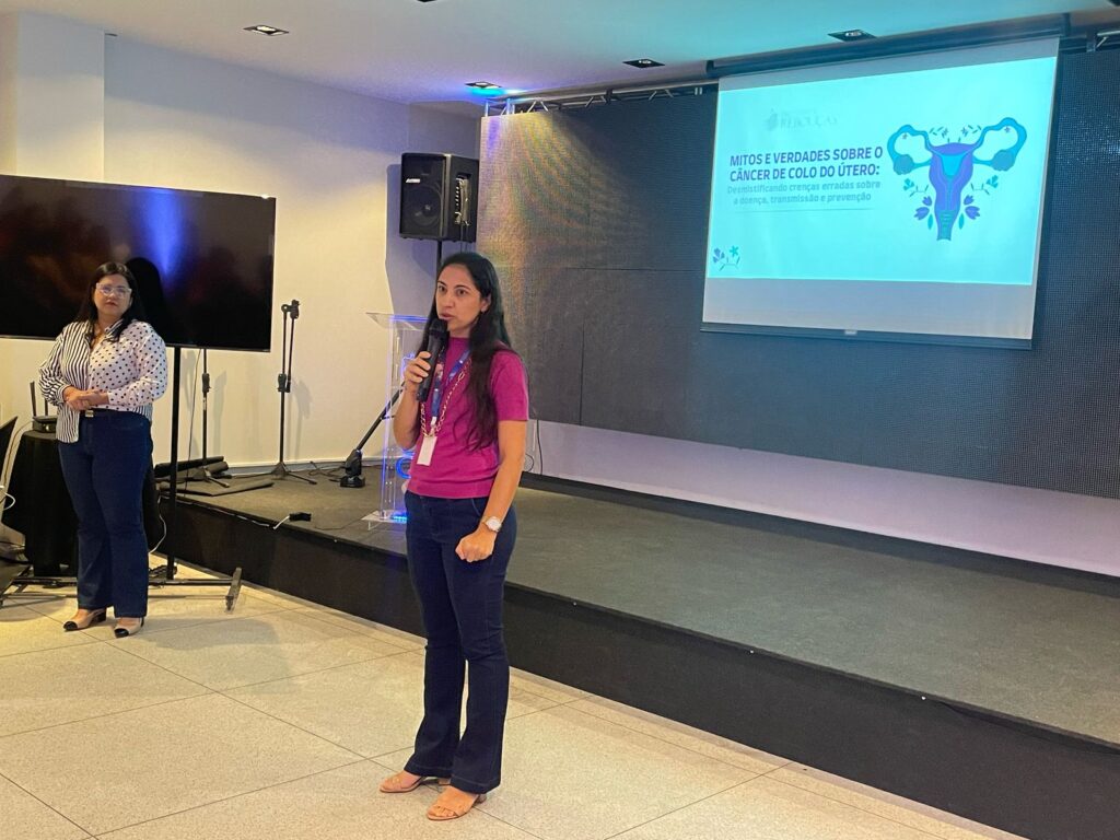 Após essa primeira etapa, os alunos de Farmácia participaram da palestra “Mitos e Verdades sobre o Câncer de Colo do Útero: Desmistificando Crenças Erradas sobre a Doença, Transmissão e Prevenção”, ministrada por Samara Santos Coutinho. A especialista abordou temas essenciais sobre o tema, reforçando a importância da vacinação contra o HPV, da realização periódica do exame preventivo (Papanicolau) e do acesso à informação correta para reduzir os índices da doença.