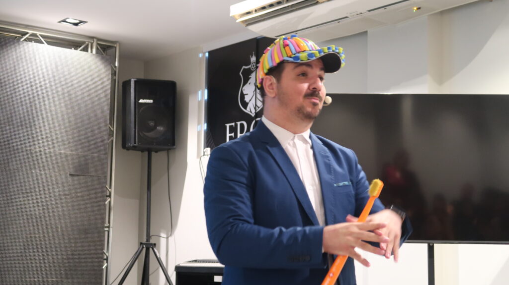 Representante oficial da Curaprox, o Dr. Jeferson compartilhou sua vasta experiência e apresentou conhecimentos valiosos sobre cuidados orais, destacando a importância de uma rotina de prevenção eficaz para a saúde bucal.