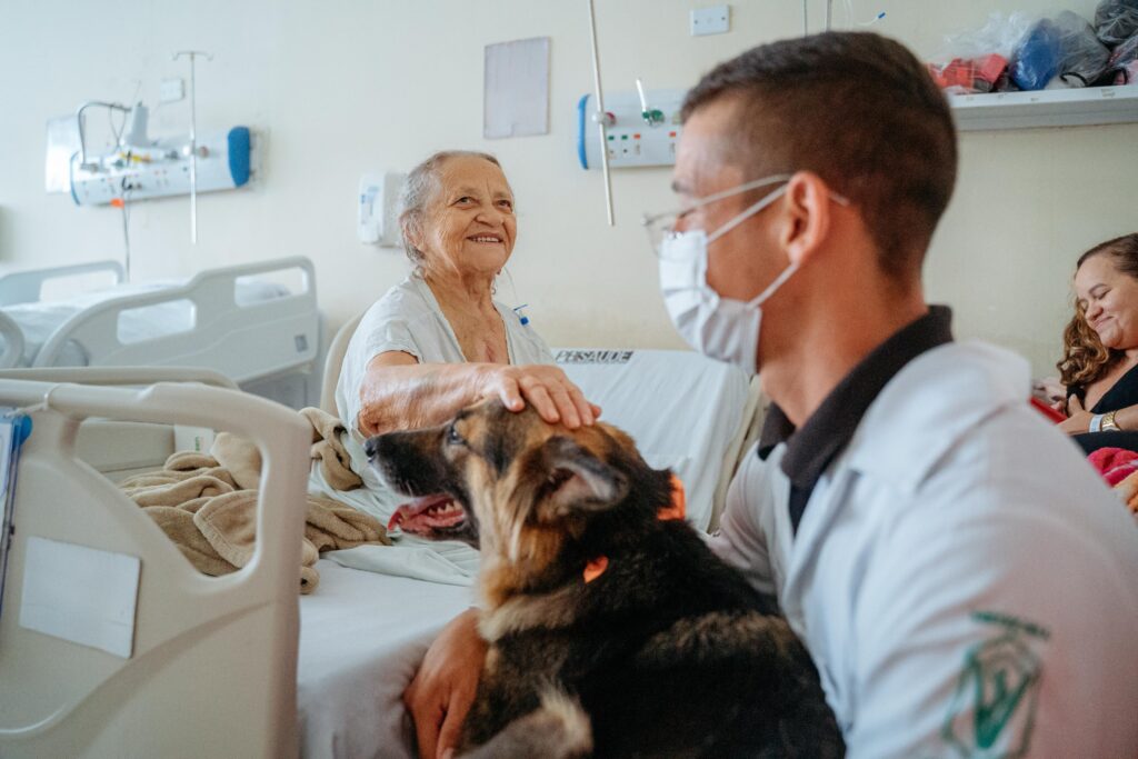 Durante a visita, Hannah proporcionou momentos de alegria e carinho, tornando o ambiente hospitalar mais acolhedor. A ação reforça os benefícios da interação com animais na recuperação e no bem-estar dos pacientes, impactando positivamente a todos os presentes.