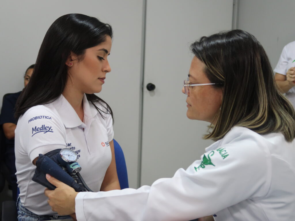 Na última quinta-feira (11), os alunos e professores do curso de Farmácia da Faculdade Rebouças estiveram presentes na Nazária Distribuidora Farmacêutica para a realização de uma ação social voltada ao cuidado com a saúde dos colaboradores da empresa.