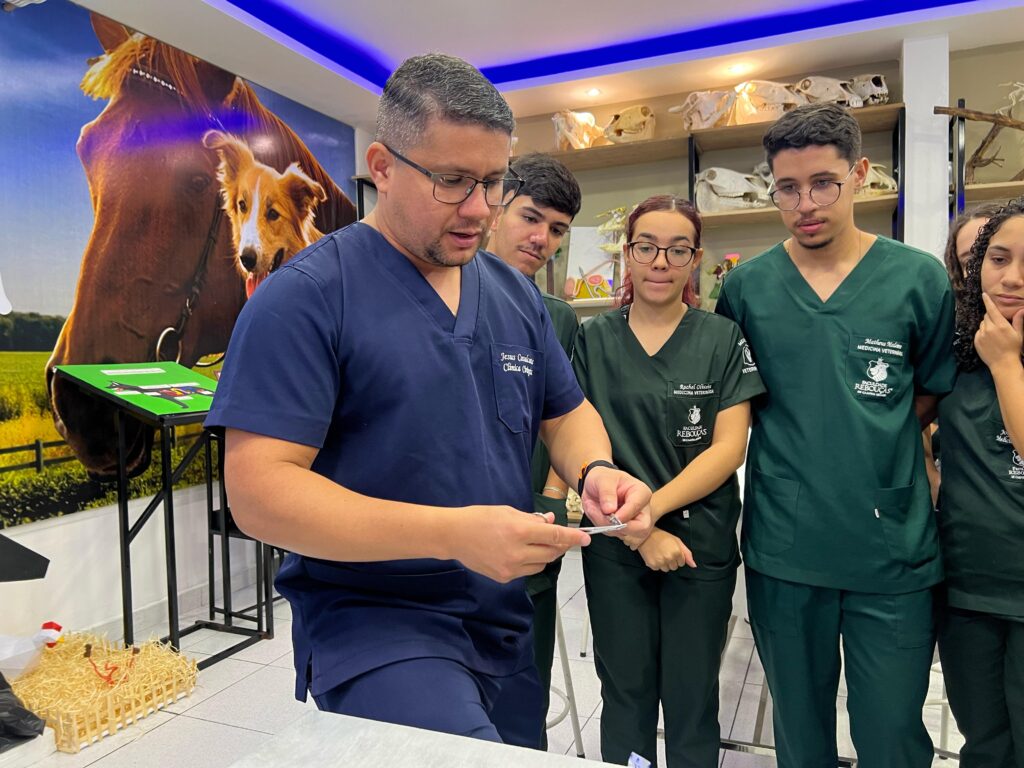 No último sábado (15), os alunos de Medicina Veterinária tiveram a oportunidade de participar de três minicursos essenciais para o desenvolvimento acadêmico. Com temas fundamentais e especialistas renomados, a experiência encerrou a semana de integração com chave de ouro. Os minicursos abordaram Hemogasometria, ministrado por Simone Popp; Instrumentação e Paramentação Cirúrgica, conduzido por Jesus Cavalcante; e Manejo e Contenção de Equinos, com o professor Marlon Azevedo.